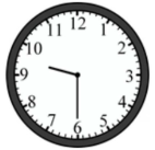 9:30时,分针指向6,时针在9和10正中间(因30分钟时针走半个大格)。