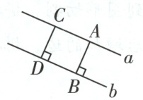 9. 如图,如果直线 a 平行于直线 b,那么线段 AB 和 CD 的大小关系是(