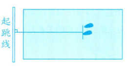 10. 如图是华华同学在运动会上跳远比赛留下的脚印。请你在图中画出测量成绩时皮尺摆放的位置。