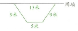 15. 张大爷在自家围墙边围了一块梯形菜地,菜地上底长5米,下底长13米,两腰各长9米,他只用了23米长的篱笆围墙。你知道他是怎么围的吗?请你画一画。