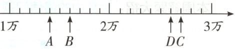 12. 在下面的数线图中用虚线圈出的有很多数,这些数四舍五入到万位约是(