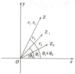 (若$\theta_2 < 0$,就要把$\overrightarrow{OZ_1}$绕原点$O$按顺时针方向旋转角$|\theta_2|$),再把它的模变为原来的$r_{2}$
