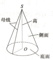 2.表示方法:用表示它的旋转轴的字母来表示,如圆锥$SO$.