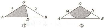 (2)题图①所示方案的扇形面积为$S_{1}=\frac{1}{2}\alpha R_{1}^{2}=\frac{1}{2}×\frac{\pi}{6}×2^{2}=\frac{\pi}{3}$.题图②所示方案的扇形面积为$S_{2}=\frac{1}{2}\alpha R_{2}^{2}=\frac{1}{2}×\frac{2\pi}{3}×1^{2}=\frac{\pi}{3}$