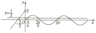 5.$\left\{ x \mid - \frac{3}{2} < x < 0, 或 \frac{\pi}{6} + 2k\pi < x < \frac{5\pi}{6} + 2k\pi,k \in \mathbf{N} \right\}$在同一平面直角坐标系中画出函数$f(x)$和函数$y = \frac{1}{2}$的图象,如图所示,