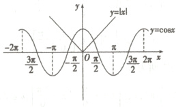 6.C 在同一坐标系中作函数$y = |x|$及函数$y = \cos x$的图象,如图所示