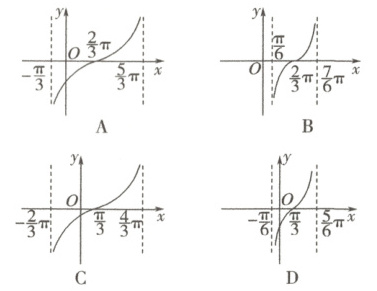 4. 函数$y=\tan(\frac{1}{2}x-\frac{\pi}{3})$在一个周期内的图象是 (