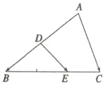 9.$\frac{1}{2}$ 由已知$\overrightarrow{DE}=\overrightarrow{BE}-\overrightarrow{BD}=\frac{2}{3}\overrightarrow{BC}-\frac{1}{2}\overrightarrow{BA}=\frac{2}{3}(\overrightarrow{AC}-\overrightarrow{AB})+\frac{1}{2}\overrightarrow{AB}=-\frac{1}{6}\overrightarrow{AB}+\frac{2}{3}\overrightarrow{AC}$,$\therefore\lambda_{1}=-\frac{1}{6}$,$\lambda_{2}=\frac{2}{3}$,从而$\lambda_{1}+\lambda_{2}=\frac{1}{2}$.