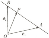 4. 设向量$\overrightarrow{OA}=\boldsymbol{e}_1,\overrightarrow{OB}=\boldsymbol{e}_2$,若$\boldsymbol{e}_1$与$\boldsymbol{e}_2$不共线,且点$P$在线段$AB$上,$|\overrightarrow{AP}|:|\overrightarrow{PB}| = 2$,则$\overrightarrow{OP}=$ (