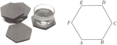 4. (多选)软木锅垫一般用于餐厅、咖啡厅、酒店等公共饮食场所,可作广告饰品以提高形象。杯垫透气、无毒、无异味、防水防潮、耐油耐酸、弹性环保,具有耐冲击、不变形、耐用等特点。正、反面可加置印刷公司$LOGO$、图片、产品、广告、联系方式等,更接近人们的生活,较强的摩擦力可以防止玻璃、瓷杯滑落,亦可保护桌面不被烫坏。如图,这是一个边长为10厘米的正六边形的软木锅垫$ABCDEF$,则下列选项正确的是