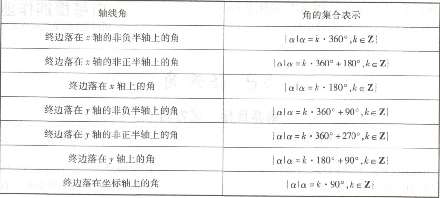 $= \alpha + k·360^{\circ},k\in\mathbf{Z}\}$,即任何一个与角$\alpha$终边相同的角,都可以表示成角$\alpha$与周角的整数倍的和.