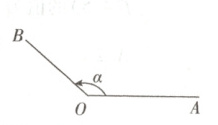 如图,平面内一条射线$OA$绕着它的端点$O$按箭头所示方向旋转到终止位置$OB$,形成角$\alpha$.点$O$是角$\alpha$的顶点,射线$OA,OB$分别是角$\alpha$的始边和终边.