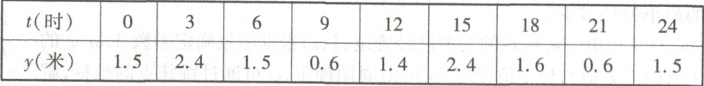 某港口的水深$y$(米)是时间$t(0 \leq t \leq 24$,单位:小时)的函数,下面是每天时间与水深的关系表: