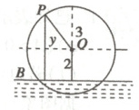 如图为一半径为3m的水轮,水轮圆心$O$距离水面2m,已知水轮自点$B$开始1min旋转4圈,水轮上的点$P$到水面距离$y$(m)与时间$x$(s)满足函数关系式$y = A\sin(\omega x + \varphi) + 2$,则有 (
