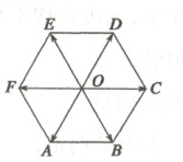例 4. 如图,$O$是正六边形$ABCDEF$的中心,分别求出$\overrightarrow{OD}$与$\overrightarrow{OB},\overrightarrow{OD}$与$\overrightarrow{OE},\overrightarrow{OD}$与$\overrightarrow{AB}$的夹角.
