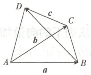 如图,向量$\overrightarrow{AB} = \boldsymbol{a},\overrightarrow{AC} = \boldsymbol{b},\overrightarrow{CD} = \boldsymbol{c}$,则向量$\overrightarrow{BD}$可以表示为 (