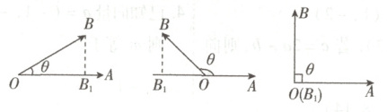 1. $|a||b|\cos\theta$ 2. $0^{\circ}\leq\theta<90^{\circ}$ $90^{\circ}<\theta\leq180^{\circ}$ 0 $|a||b| - |a||b|$
