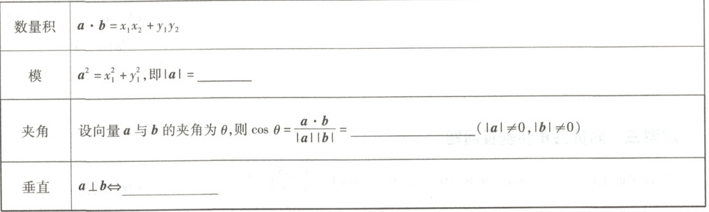 夹角:$\frac{x_1x_2 + y_1y_2}{\sqrt{x_{1}^{2}+y_{1}^{2}}\sqrt{x_{2}^{2}+y_{2}^{2}}}$;