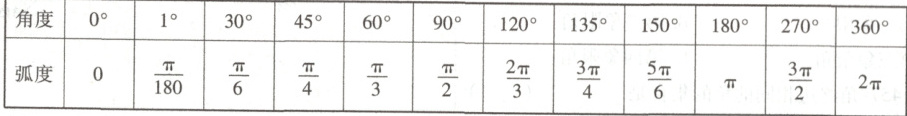 (2)一些特殊角的角度数与弧度数的对应关系有