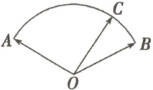 例3. (1)如图,半径为$\sqrt { 3 }$的扇形 $AOB$ 的圆心角为 $1 2 0 ^ { \circ }$,点 $C$ 在$\overset{\frown} {AB}$上,且$\angle C O B = 3 0 ^ { \circ }$,若$\overrightarrow { O C } = \lambda \overrightarrow { O A } + \mu \overrightarrow { O B }$,则 $\lambda + \mu$ 等于