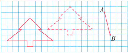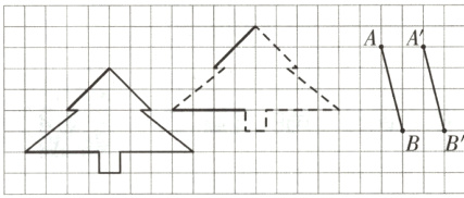 2. 先用平移的方法画一条与线段 $AB$ 互相平行的线段$A^{\prime}B^{\prime}$,再从平移前后的“松树”中找出两组互相平行的线段,用不同的颜色描出来。