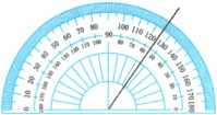 (3) 度量角时,角的一条边对着内圈$180^{\circ}$刻度线,另一条边对着外圈(