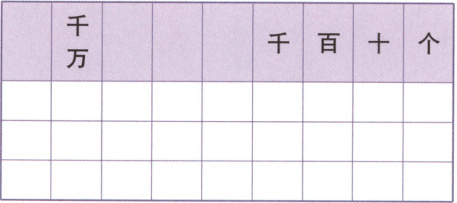 3. 先补全数位顺序表中的计数单位,然后在表中写出各数。