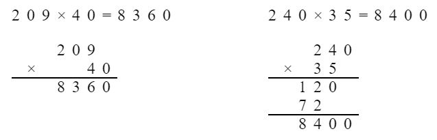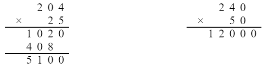 $\begin{array}{r r r} & & 2 & 4 & 0 \\ × & & & 5 & 0 \\ \hline & & & & \\ \end{array}$