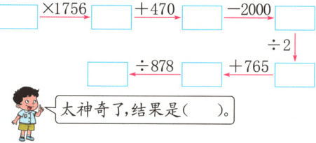 2. 在第一个框里任写一个大于0的自然数,用计算器算一算,填一填。