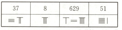 1. 我国古人用算筹记数,从右往左,个位用纵式,十位用横式,百位用纵式,千位用横式……请你照样子填一填。(6分)