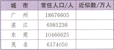 3.下面是某时期部分城市的常住人口情况,请将表中的数据省略万位后面的尾数,写出它们的近似数。