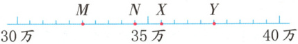 一条数线,从左到右依次标记:M 30万,N 35万,X,Y 40万