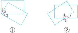 6.图①中$\angle 1$和$\angle 3$是否相等?图②中$\angle 4$和$\angle 6$是否相等?