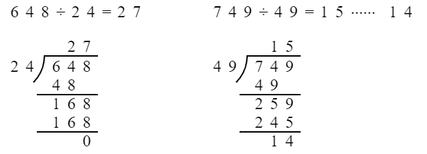 ④$975 ÷ 13$ ⑤$720 ÷ 25$ ⑥$896 ÷ 28$