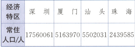 (2)(深圳福田区)下面是第七次全国人口普查四个经济特区的常住人口情况。其中,常住人口最多的是(