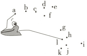 五、到达动物园后,大家看到入口处有一幅宣传画。请你和同学们一起将画作中的字母按字母表顺序连起来吧!(共5分)