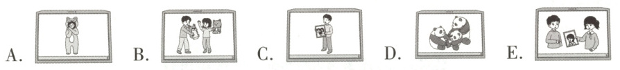 七、参观后,同学们做了一些小游戏,小领队Sarah拍摄了一些照片。请你选出与句子或对话匹配的图片。(只填字母标号)(共10分)