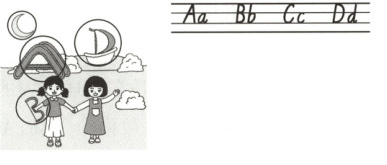 五、三(一)班同学共同完成了“友谊画卷”。圈出画卷中的字母,并将其大小写按字母表顺序写在四线三格中。(共 10 分)