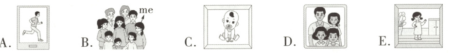 三、大家在一起分享着照片,回忆着趣事。听他们的对话,将对应的图片序号写在横线上。每小题读两遍。(共10分)