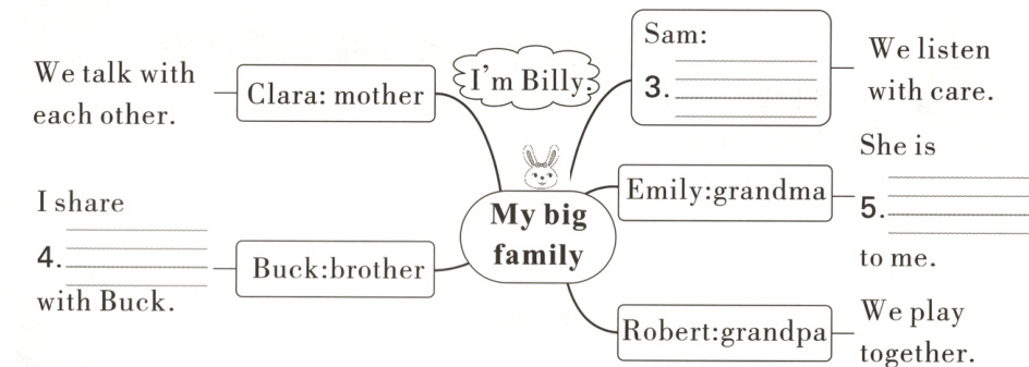 任务2:3.father/dad 【解析】根据故事中“This is my father Sam. We listen with care.”可知,Sam是Billy的爸爸。