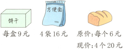 (1)(数形结合)买$1$盒饼干和$1$袋方便面一共需要多少元?(先补全下图,再列式计算)