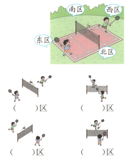 2. 把正确的观看区域填入括号中。