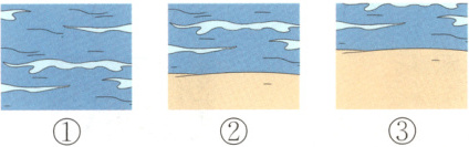 4. ① 解析:站在海里拍摄,视角较低,看到的海面范围相对更大,沙滩范围相对更小,据此对比三幅照片判断。