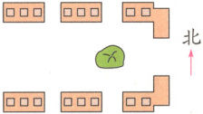 丁丁分别从小区的东、南、西、北四个方向拍摄了一张照片,你知道下面四张照