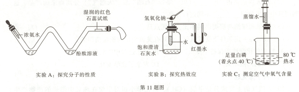 (1)实验A:从胶头滴管中挤入少量浓氨水,一会儿后观察到石蕊、酚酞都变色,说明分子