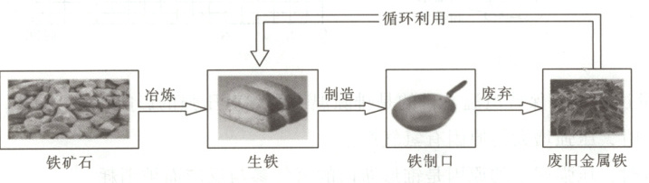 3. 下图为铁的冶炼和铁制品循环利用的示意图,下列说法错误的是(