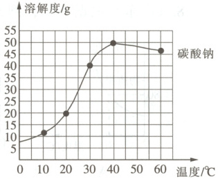 4.B【详解】C.30℃时,碳酸钠的溶解度为40g,则50g水中最多溶解$50g×\frac{40g}{100g}=20g,$则将25g碳酸钠加入50g水中,所得溶液质量为20g+50g=70g;D.40℃时,碳酸钠饱和溶液的溶质质量分数为$\frac{50g}{100g+50g}×100%≈33.3%。$
