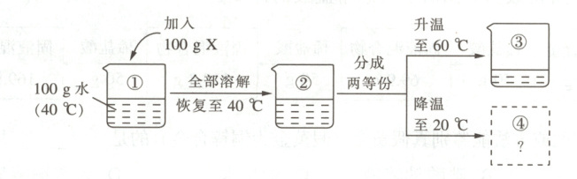 2.C【详解】根据图示可知,40℃时,100g水加入100gX,X全部溶解,根据溶解度概念可知,40℃时,X的溶解度大于或等于100g。
