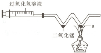 4. 用 W 型玻璃管进行如右图所示的微型实验:先对 a 处物质加热使之燃烧,然后将注射器中的过氧化氢溶液推入管中与二氧化锰接触,并始终控制液体不进入 a 处。下列说法正确的是(