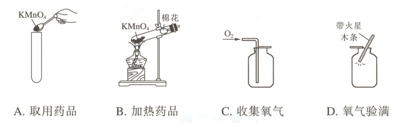 D.用向上排空气法收集$ O_2$验满时,将带火星的木条放入集气瓶中